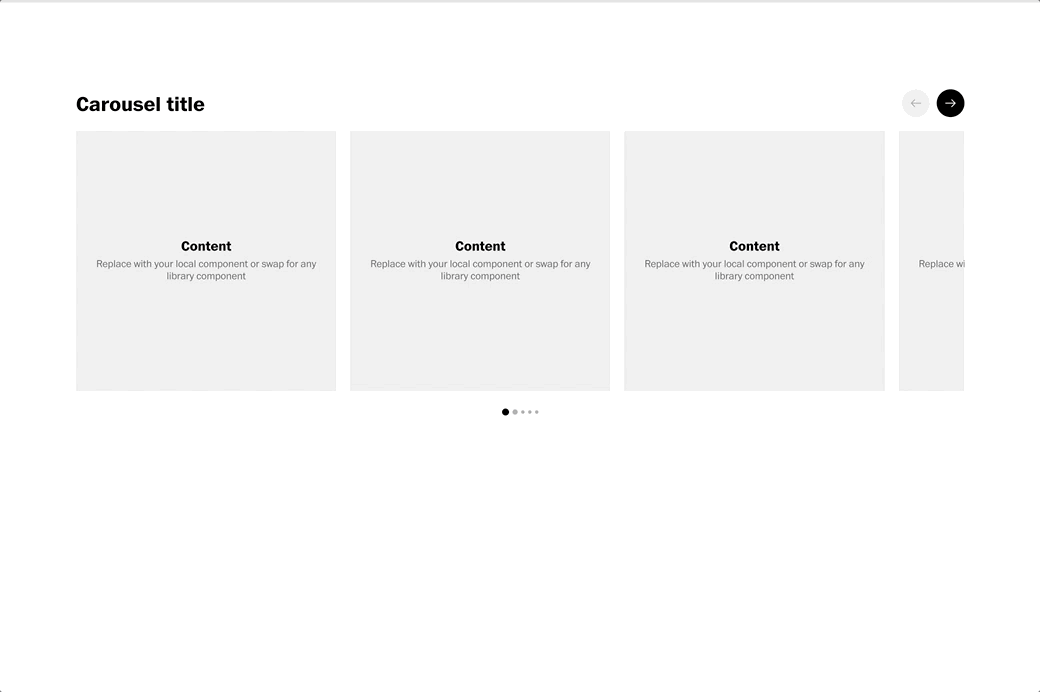 Like all of the components in our UI Kit Library, the Carousel component can be placed into your Figma file by dragging an instance of it from the “Assets” panel into your document.
